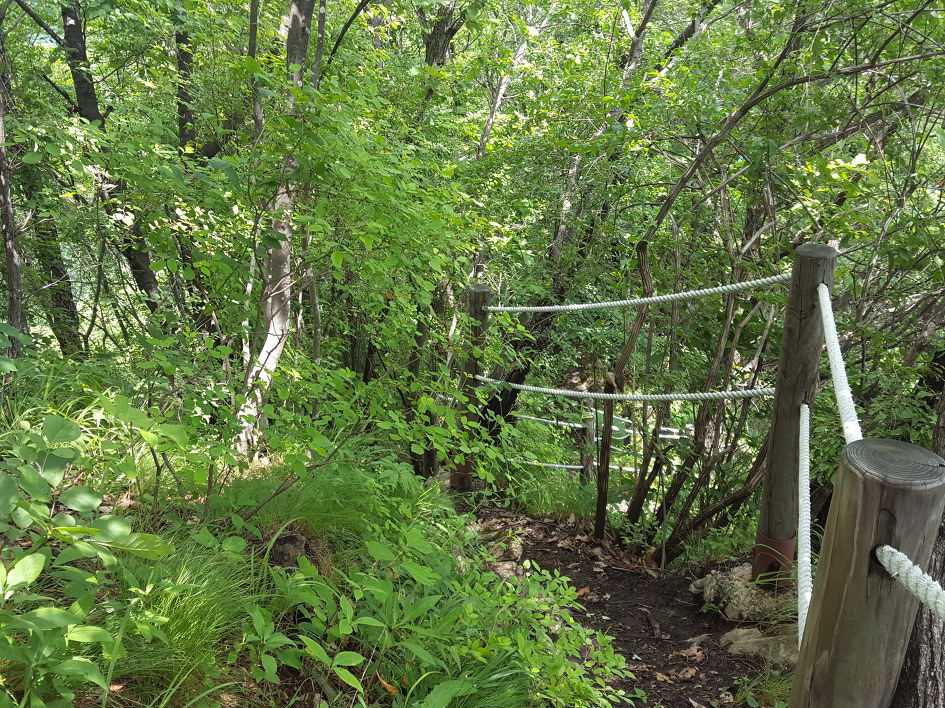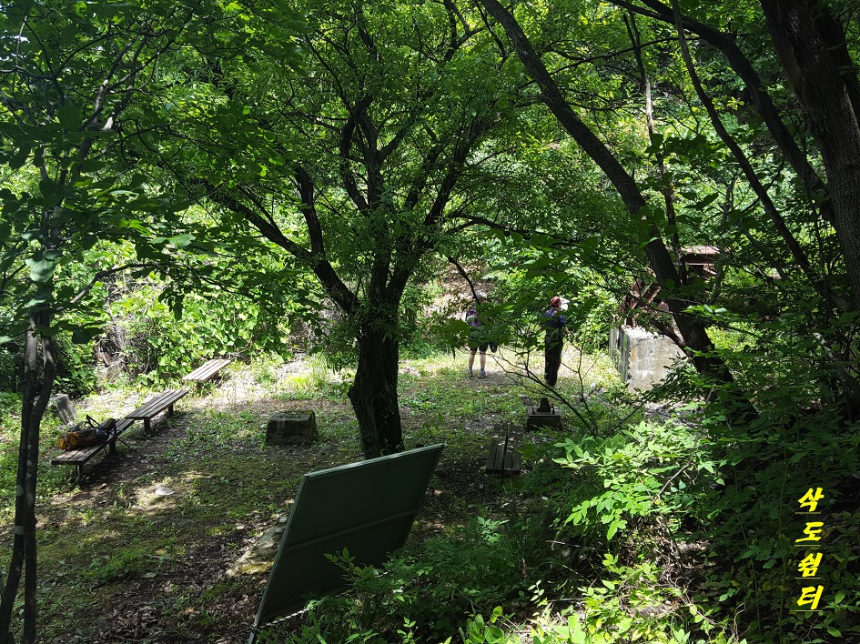 들리지 않고 계곡을 따라 바로 삭도쉼터로 올라가는 지름길 등산로이다.