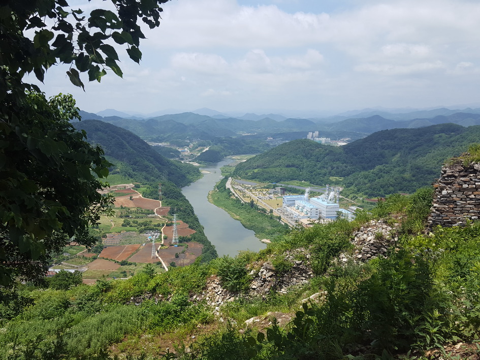 ↓.정양산성에서 산행 출발지 영월 화력발전소 쪽을 내려보니