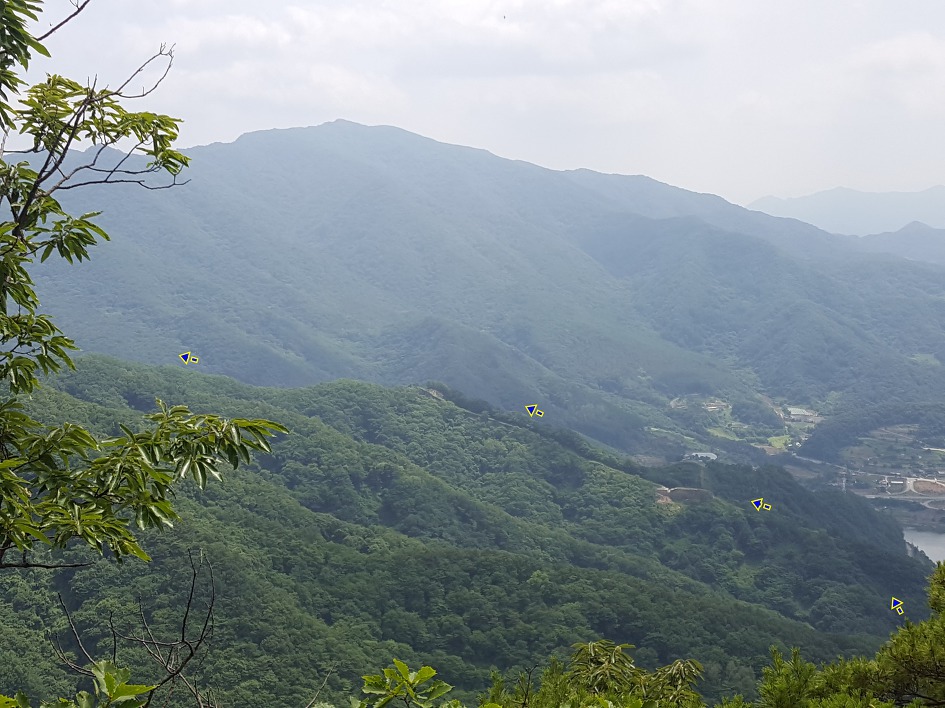 ↓.5봉에서 우측으로 시야가 트이며 태화산이 전면에 보인다.