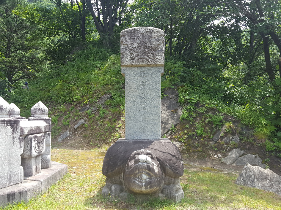 ↓.정종대왕태실(正宗大王胎室)라고 새겨져 있는데 글귀가 잘 보이지 않는다.