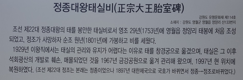 ↓.산행 안내도를 지나 조금 올라서면 정종대왕태실비가 있다.(정종대왕태실비 안내판)