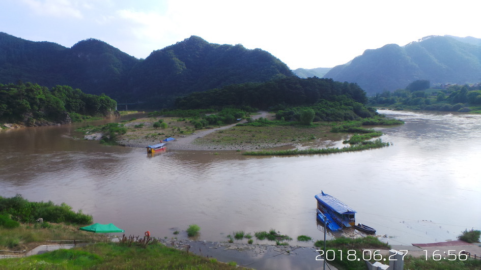 ↓.몸을 씻은 팔흥교 아래 남한강 강물은 깨끗하지 못하였지만