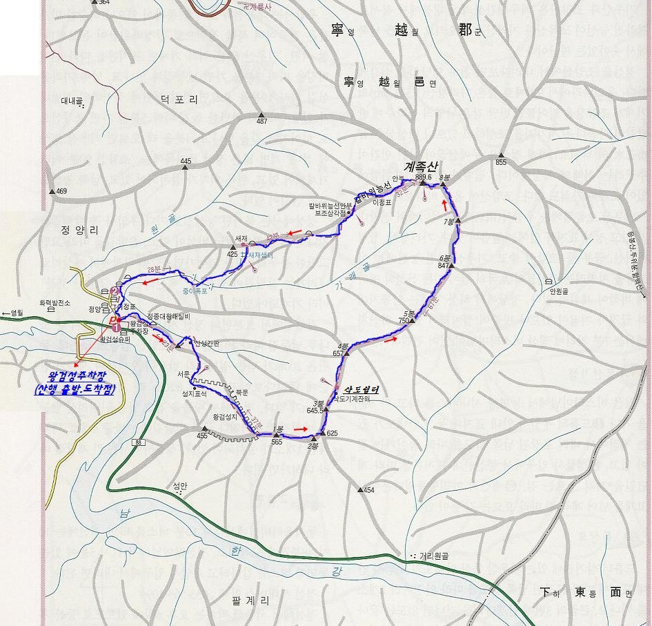 (남제천IC에서 산행시작점인 왕검성 주차장까지 약 43㎞.35분소요)