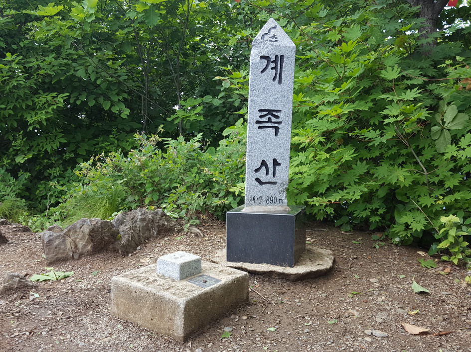 나란히 있고 주위 조망은 꽝이다.(잠시휴식)산 모양이 닭 발처럼 생겼다고 하여