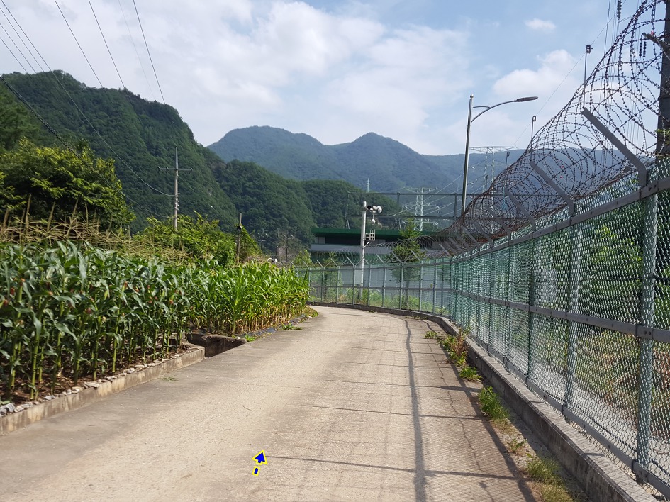↓.우측에 영월 화력발전소 철망을 따라 내려간다.