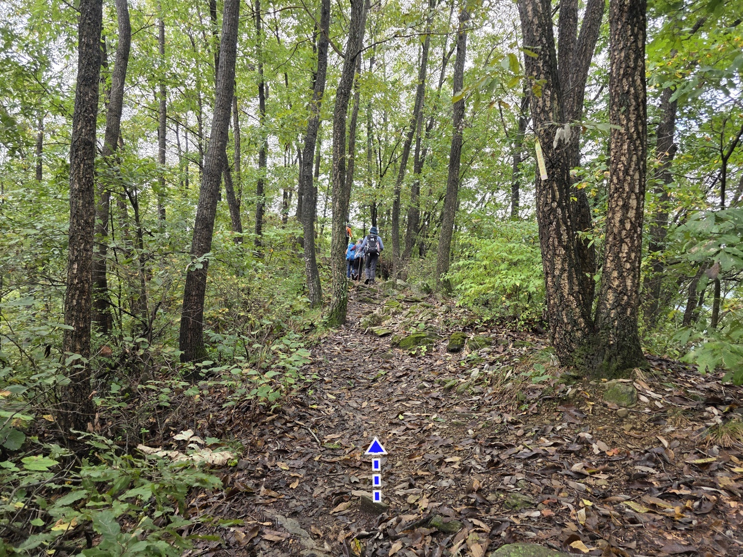 ↓.나무테그 길에서 담치기를 하여 좌측 옥순봉 방향으로 올라간다.