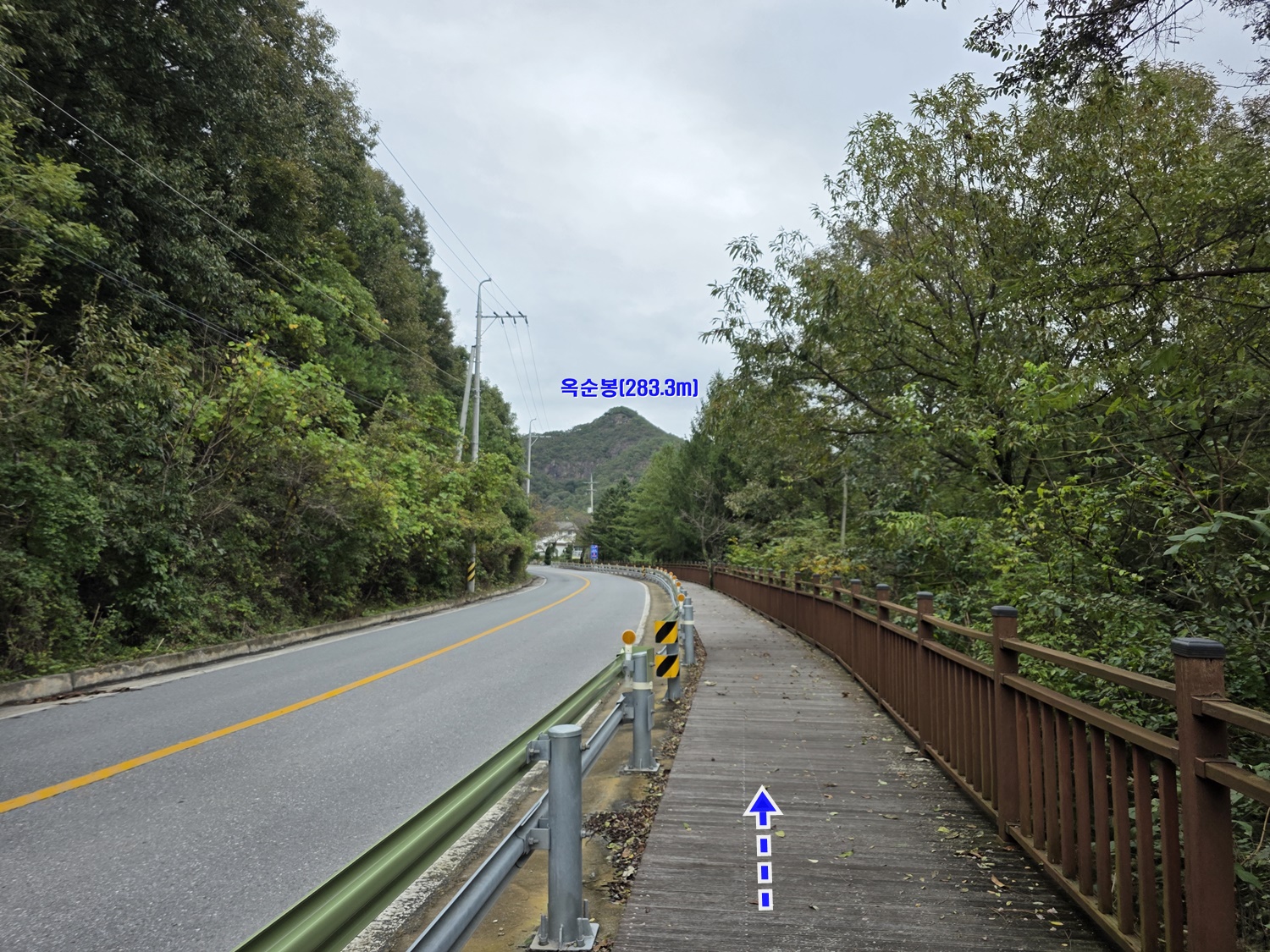 좌측 산행출발지 방향으로 도로를 따라간다.